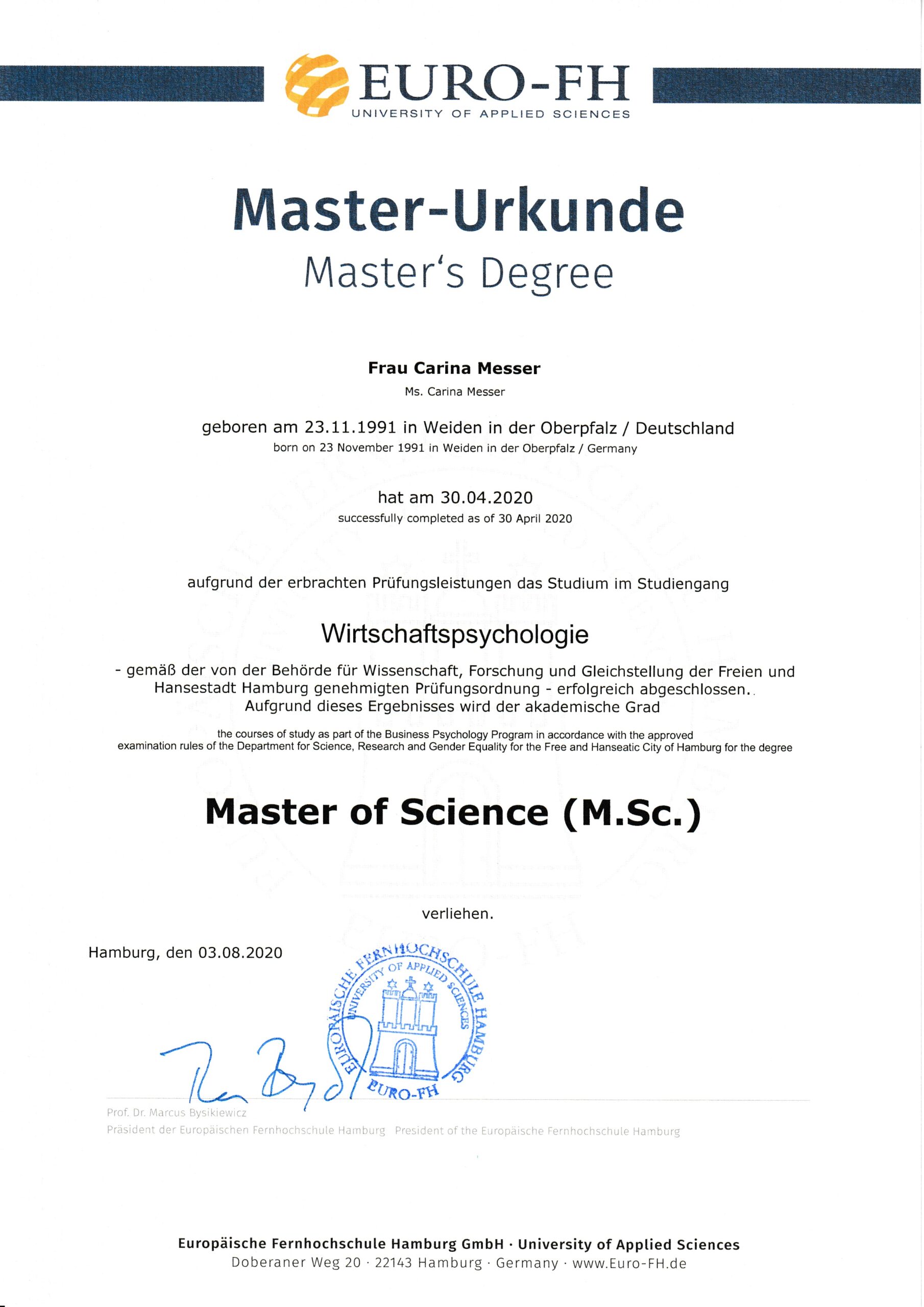 In meinem Masterstudium der Wirtschaftspsychologie habe ich die Grundlagen für meine heutige Tätigkeit gelegt: